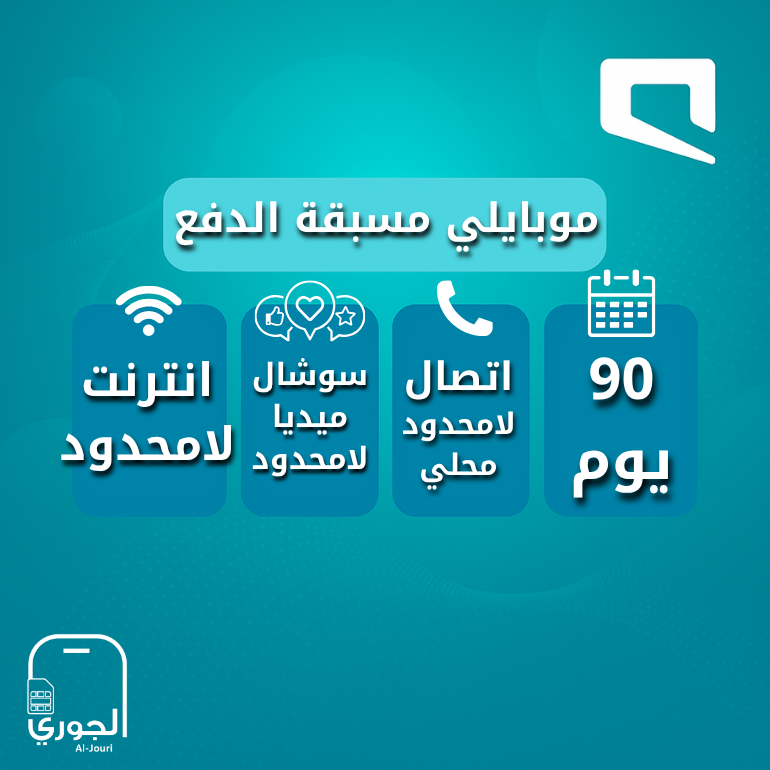 يمكنك الحصول على هذه الباقة بسعر مناسب مع تفعيل خلال ساعات العمل الرسمية عند الاشتراك من الجوري للاتصالات